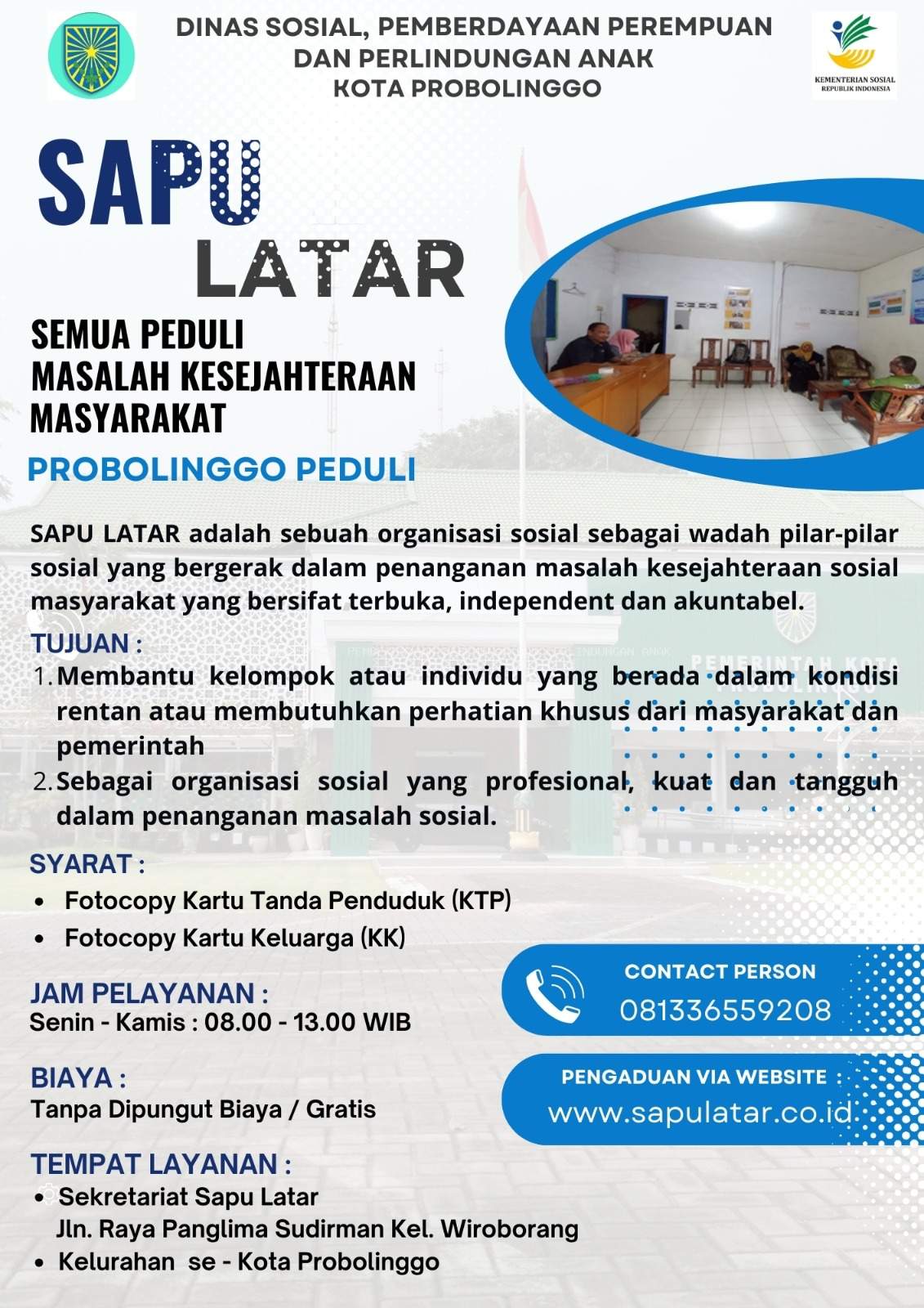 2.      Pemohon datang langsung ke Sekretariatan Sapu Latar yang bertempat di Jalan Raya Panglima Sudirman Kelurahan Wiroborang.